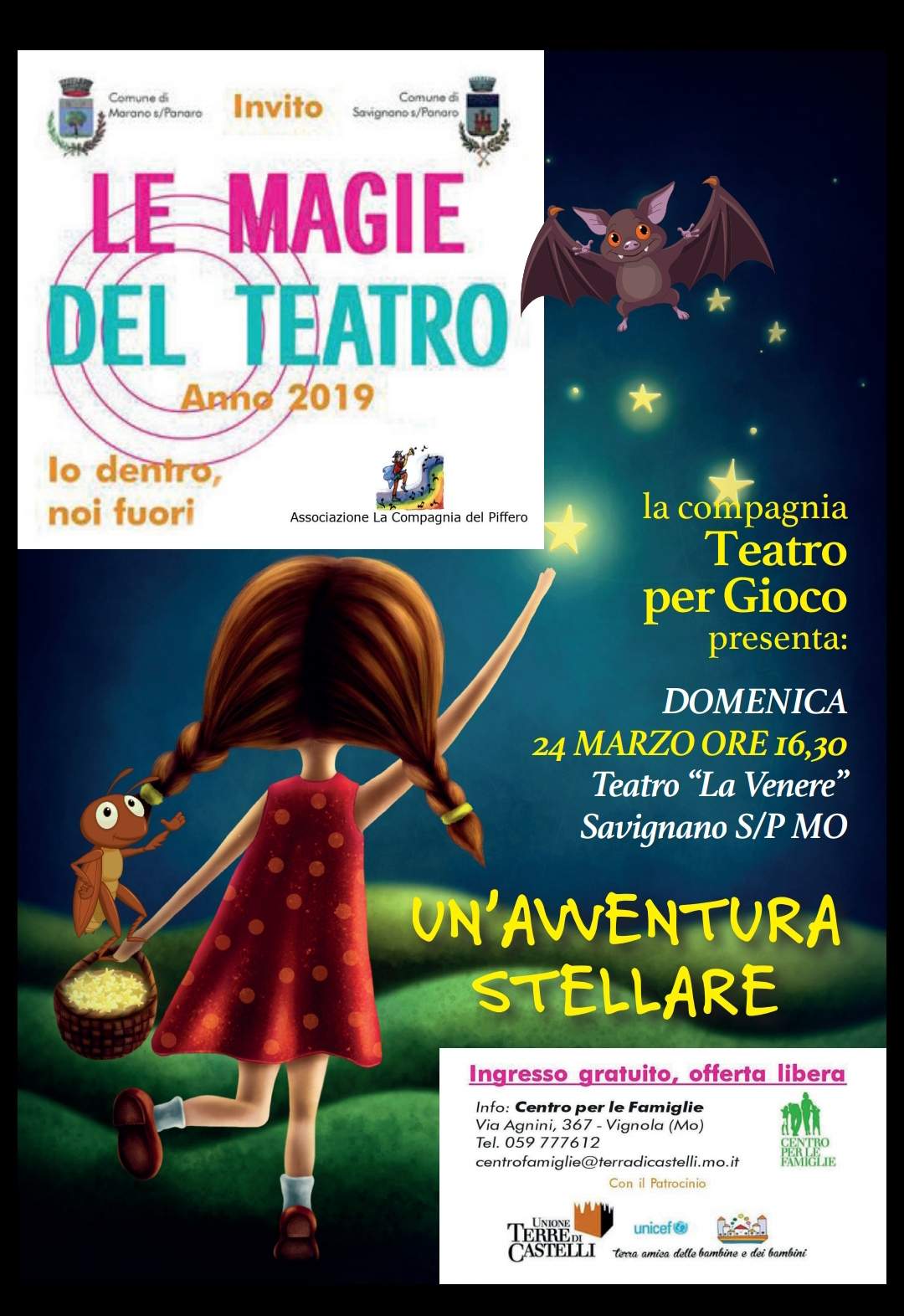 La compagnia Teatro Per Gioco ha devoluto l'intero incasso dell'evento alla nostra associazione. Un ringraziamento speciale a Katia e alla associazione la compagnia del Piffero.